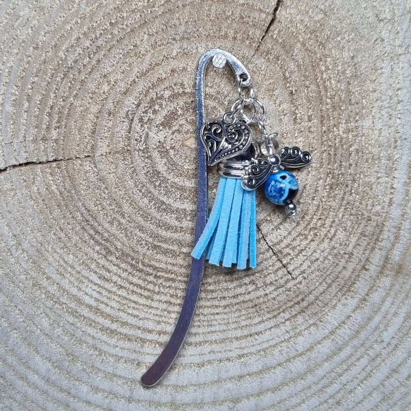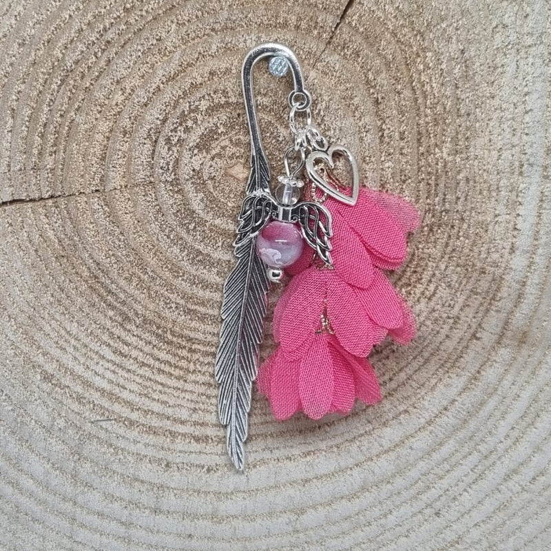 Houd jij van lezen? Dan kan deze leuke boekenlegger niet ontbreken aan jouw boek! Aan de metalen boekenlegger hangt natuurlijk een geluksengeltje. Daarbij hangt er een kwastje of chiffon bloemen tros en bedeltje in het geluk thema aan. Het metalen gedeeltje leg je tussen de bladzijdes en de rest bungelt vrolijk aan de buitenkant van je boek.