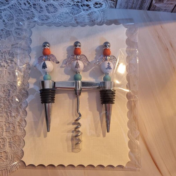 Deze wijnset bestaat uit 2 wijnflesstoppers en een kurkentrekker. De set is gemaakt van dezelfde kralen zodat er een mooie eenheid ontstaat op jouw tafel.De set wordt geleverd op een kartonnetje in een transparant zakje.
