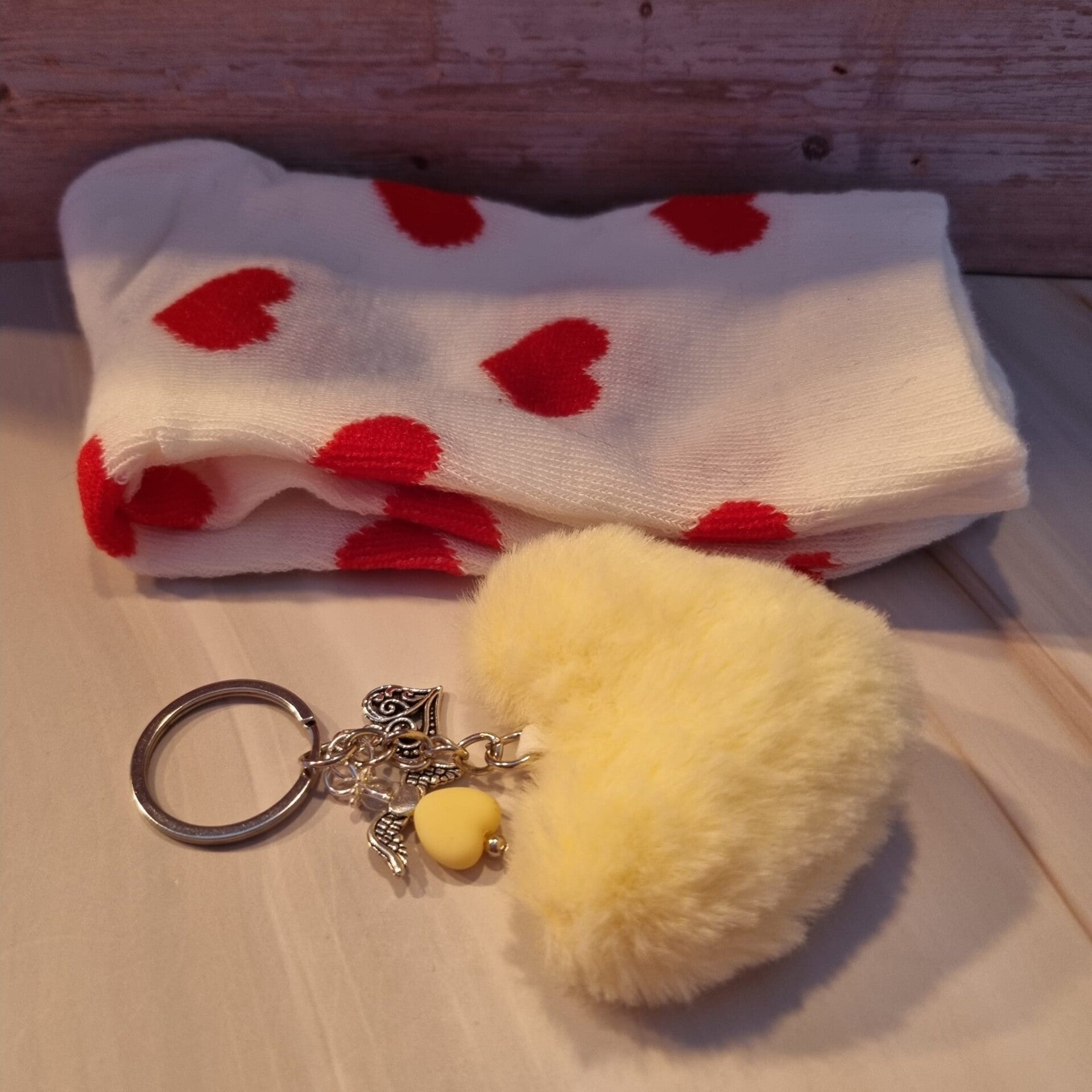 Hartjes sokken en sleutelhanger geel