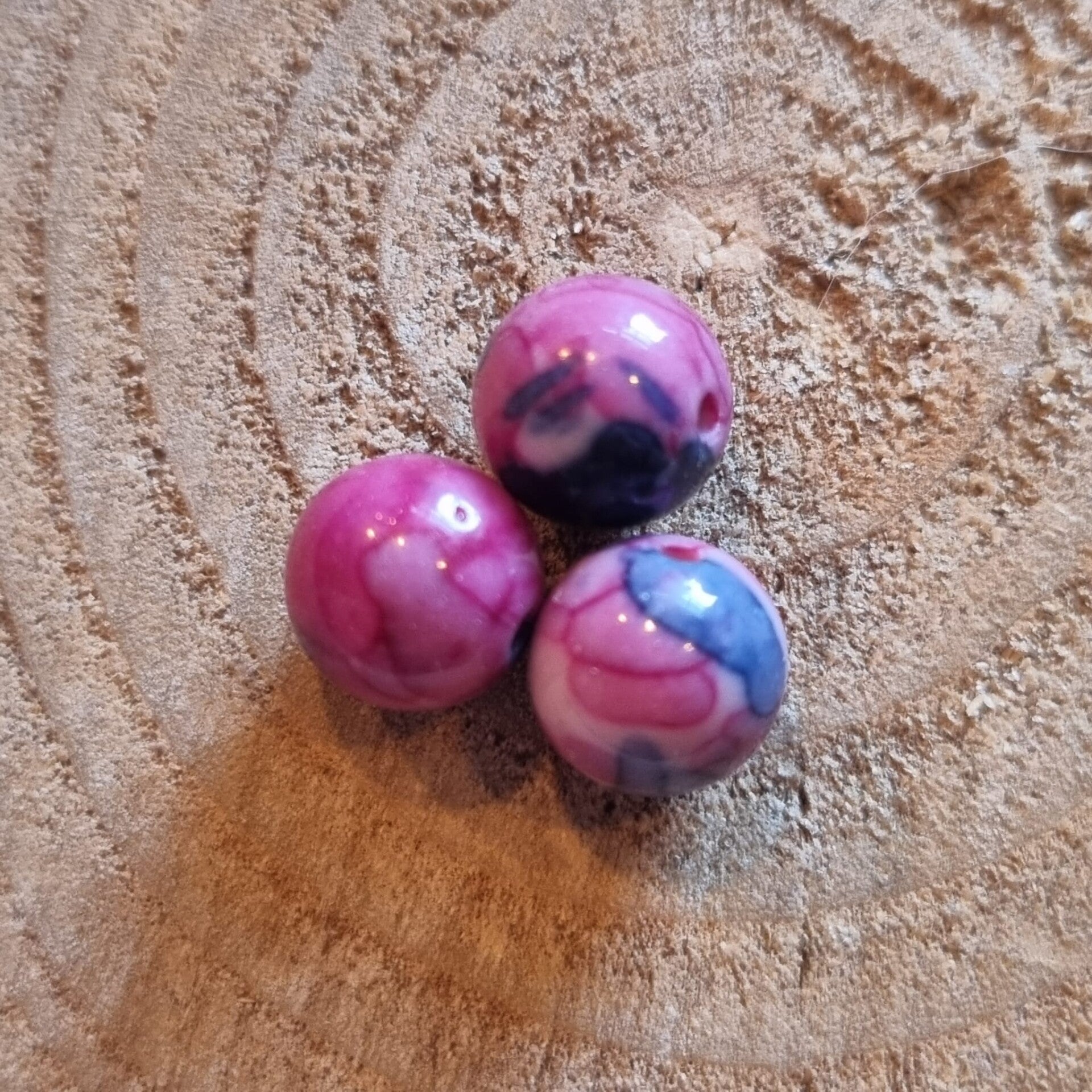 Een engeltje in een flesje. Het engeltje is gemaakt van een 8 mm kraal in het paars en roze voor het buikje en een transparante kraal van 4 mm voor het hoofdje.