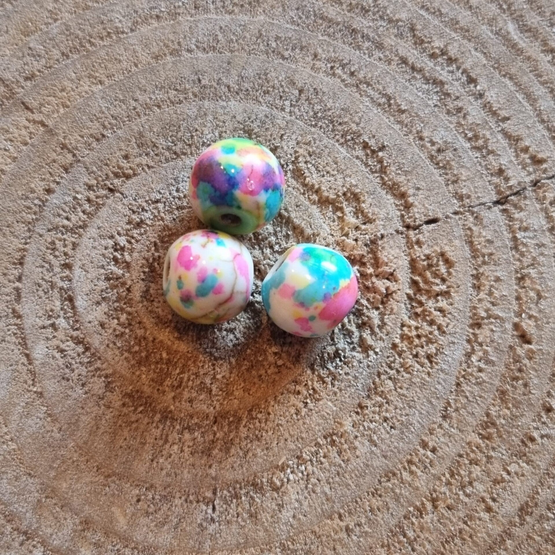 Een engeltje in een flesje. Het engeltje is gemaakt van een 8 mm kraal in het wit, blauw, geel, roze voor het buikje en een transparante kraal van 4 mm voor het hoofdje.